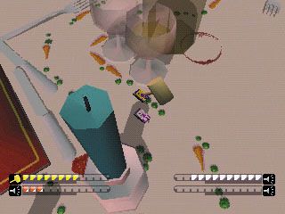 Er zijn ook allerlei pickups waardoor je raketten, mijnen, enorme hamers krijgt, die heel geschikt zijn om de anderen te verbrijzelen.